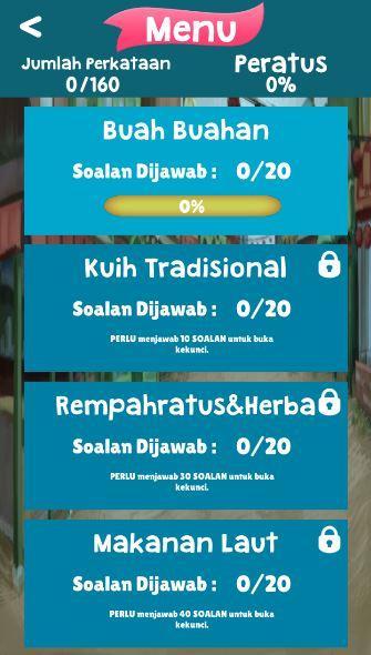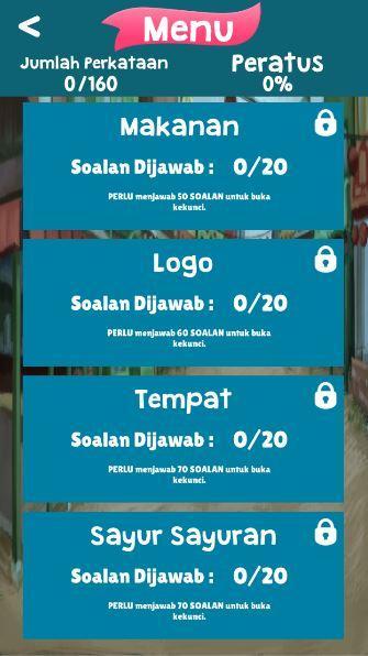 Cuba Teka is a "Images Guessing Game" game. The game is in Malay and has a variety of categories. Among them: